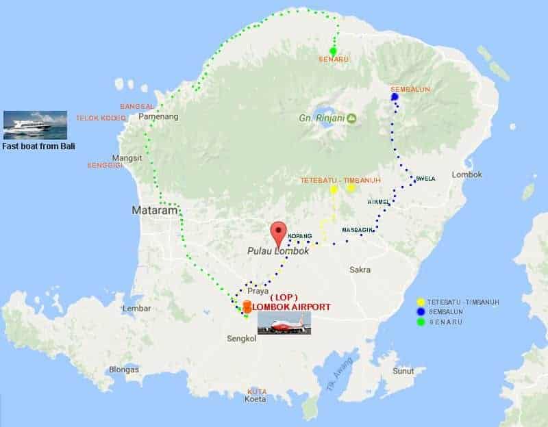 Driving routes option to Mount Rinjani from Lombok Airport :